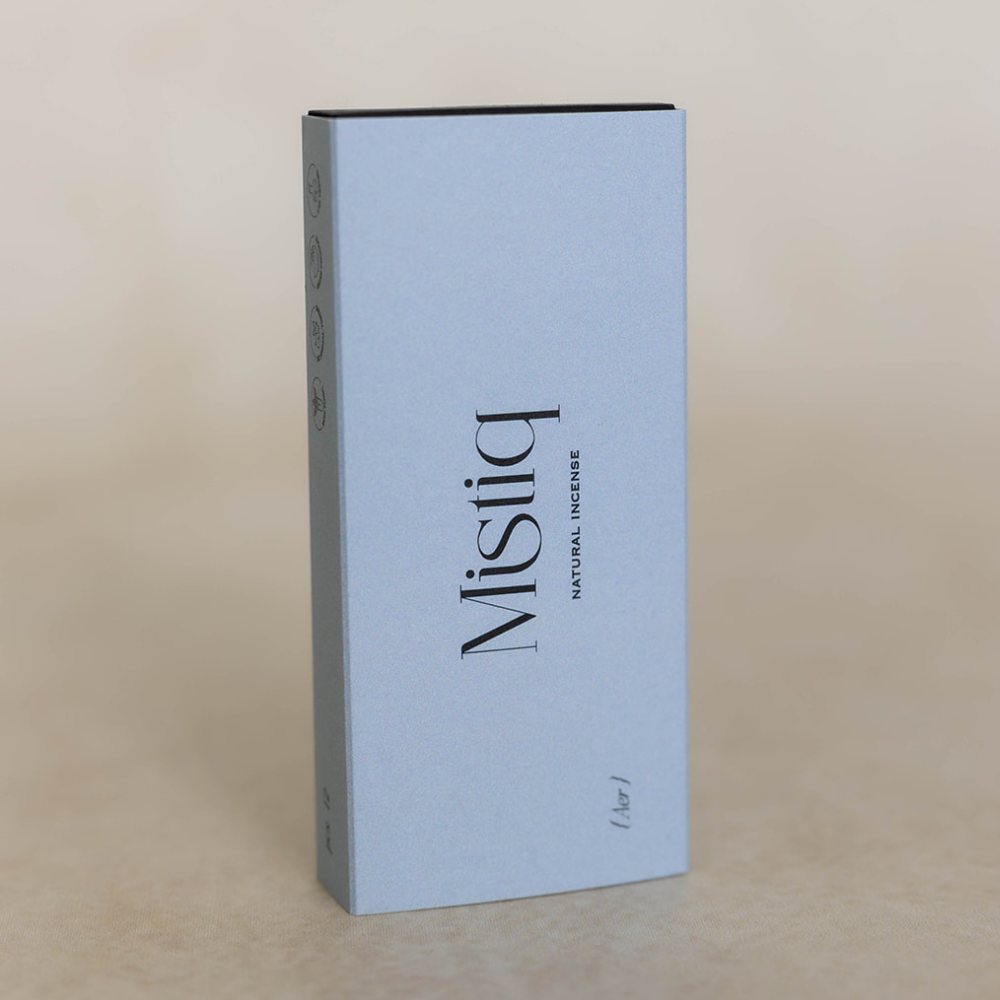 Mistiq Aer zuivert je ruimte en opent je zintuigen. De frisse, spirituele geur van palo santo en de zachte, harsachtige tonen van copal brengen helderheid en focus. Ideaal voor wie wil loslaten wat niet meer dient en ruimte wil maken voor nieuwe energie.