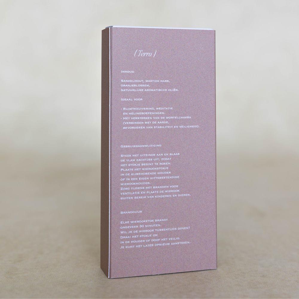 Mistiq Terra brengt je terug naar je basis. Met de warme, houtachtige geur van sandelhout en het zachte florale van oranjebloesem creëer je een kalme, heldere sfeer in je ruimte. Mastiekhars zuivert de lucht en ondersteunt diepe ontspanning. Ideaal voor momenten waarop je behoefte hebt aan rust, stabiliteit en een beetje minder ruis.